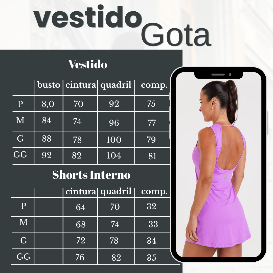O Vestido Gota foi criado especialmente para mulheres que amam unir moda, funcionalidade e conforto — seja no beach tennis, em um treino ao ar livre ou naquele look sporty-chique de verão. Com costas abertas, short embutido e tecido com toque gelado, ele entrega tudo o que você precisa para se sentir leve, protegida e cheia de estilo em qualquer movimento.